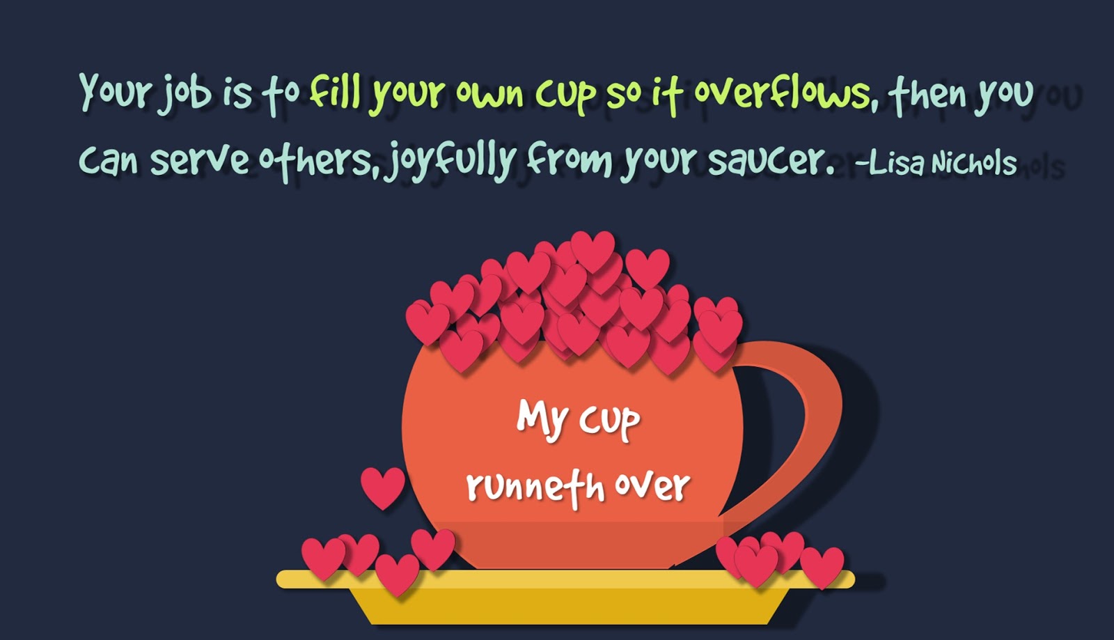 Quote: Your job is to fill your own cup so it overflows, then you can serve others, joyfully from your saucer. -Lisa Nichols